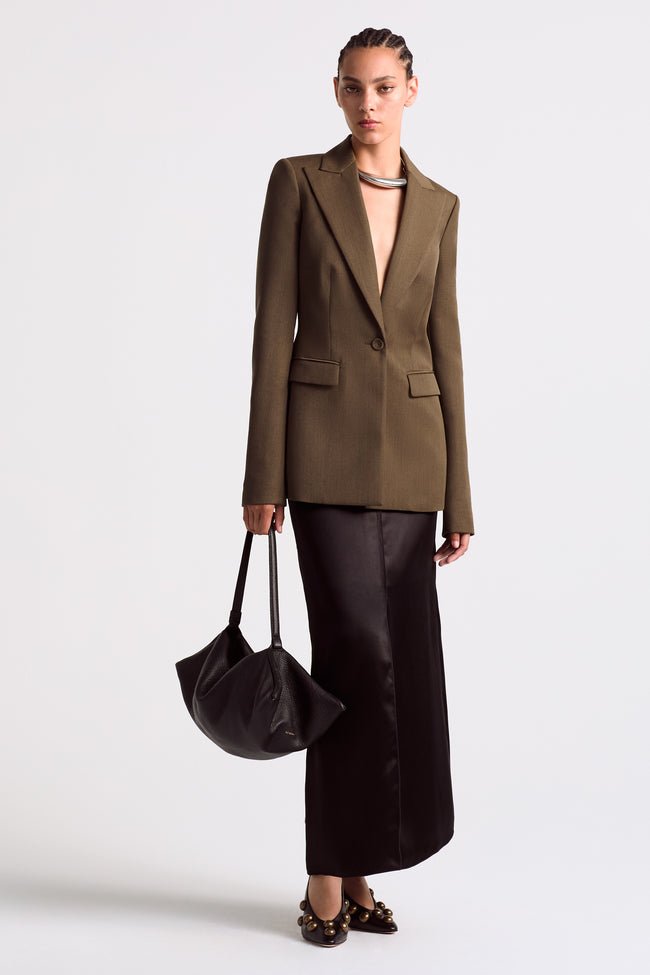The Beatty jacket is Italian made from virgin wool. Precision tailored, it features peak lapels, a single button fastening, flap pockets and a nipped waist.