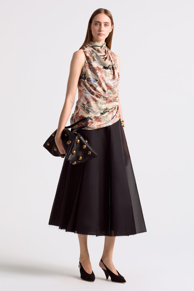 The Dex skirt draws inspiration from stories and books, designed with box pleats and exterior creases which evoke the folds of paper. It's made in Italy from crisp silk creating a voluminous silhouette.