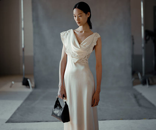 The Haruni sweater has an ethereal quality. Spun from a compact knit fabric with long, flared-cuff sleeves, rows of buttons trail down the front and arms with scalloped fastenings.