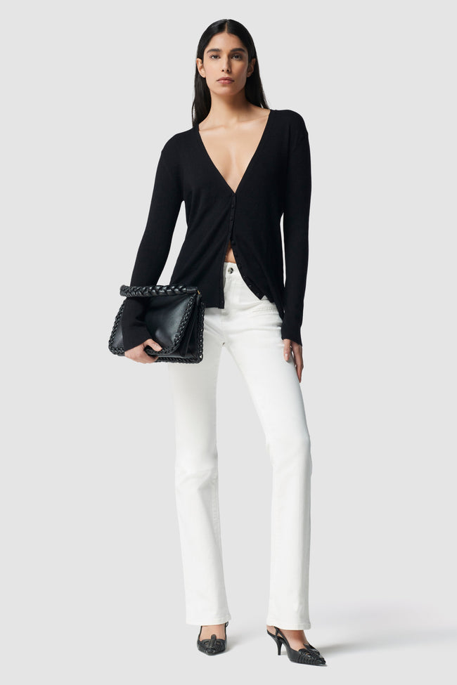 The signature Serge Pant is back in an all-new optic white denim. A sleek, floor-grazing style with a bootcut hem and a mid-rise waist. Cut from durable denim with a subtle stretch, its minimal yet elegant, detailed simply with front jet pockets.
