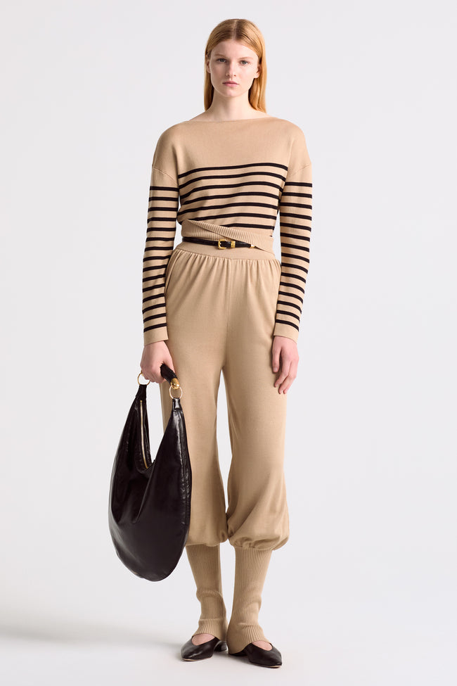 The Xander pants are knitted from a silk and cotton-blend thats cosy and luxurious. Theyre designed with a ribbed elasticated waist and fall to matching tapered hems.